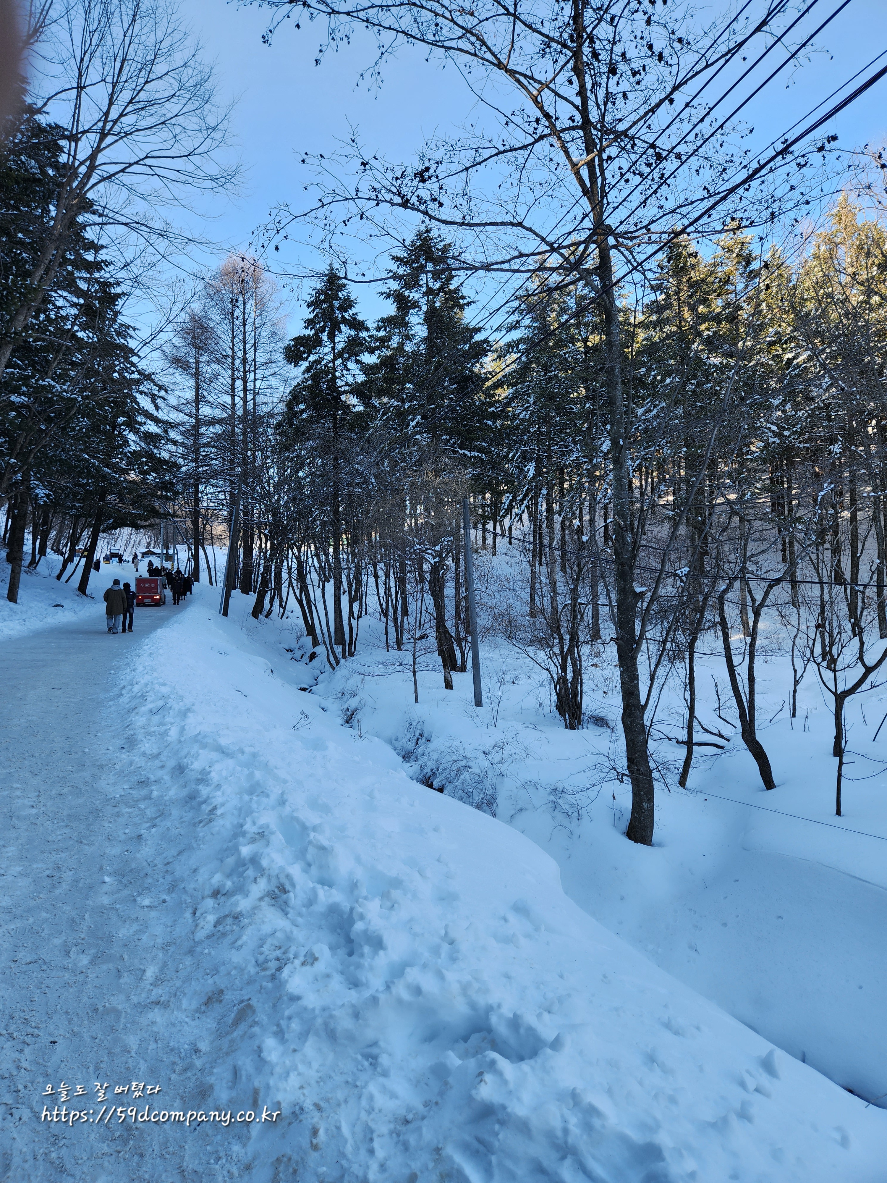 조금 더 올라가고 싶었지만 너무 늦은 시간에 도착하는 바람에 폐장시간이 다가와서 "이제는 우리가 헤어져야할시간~" 하고 노래가 나와서 웃으며 내려왔습니다. 아! 그리고 눈이 많이 쌓인 시즌에는 더 위까지 올라가려면 아이젠을 착용해야 한다고 하니, 참고하시면 좋을 것 같아요!