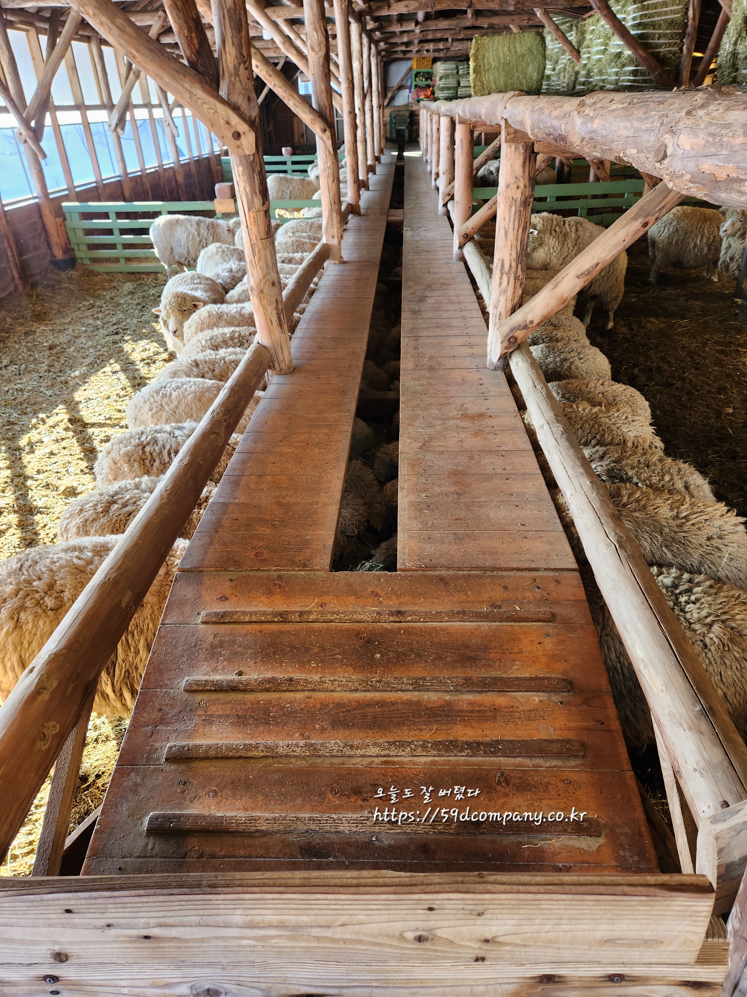 이렇게 멋진 풍경들을 감상하면서 산책로를 지나가다 보면, 양떼들이 있는 실내로 들어갈 수 있어요.